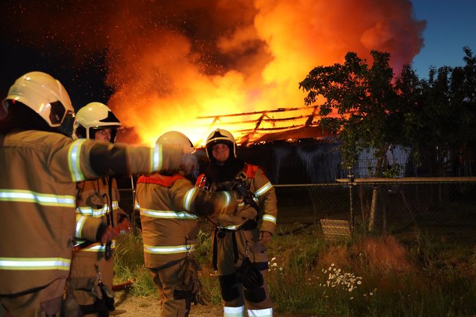 De brand ontstond rond 16.30 uur. De brandweer heeft opgeschaald naar grote brand. Een van de twee stallen staat in brand. De brandweer zette alles op alles om een naastgelegen huis van de vlammen te redden. Volgens omstanders zou het om een oud pand gaan.